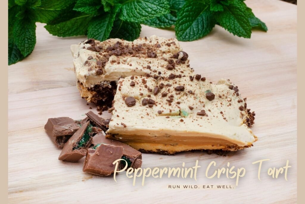 A creamy, minty Peppermint Crisp Tart layered with Tennis biscuits, whipped cream, and chocolate. No baking!